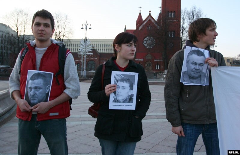 Іншая мэта акцыі – патрабаваньне вызваліць палітвязьняў. Моладзь скандавала "Свабоду!" і трымала ў руках партрэты Мікалая Аўтуховіча, Юрыя Лявонава, Ігара Асіпенкі і Арцёма Дубскага, якога, магчыма, у канцы гэтага месяца будуць судзіць за парушэньне правілаў адбыцьця пакараньня па справе 14-ці.