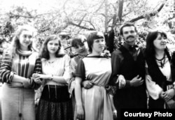 Сустрэча на Гуканьне вясны, 1982 год. Алена Каравай, Сяргей Коршун, Алена Зуева (Вашчанка), Андрэй Радзівонаў, Рыта Рыбачок (Цімохава) зь сяброўкай са Львова, Сяргей Кныш, Тацяна Храмянкова (Козік).