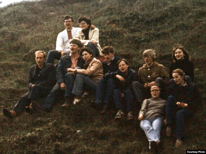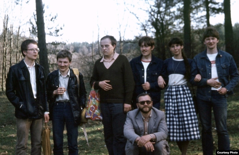 Вандроўка ў Люцінку, Ракаў, Івенец. Лета 1983 году. Стаяць Вінцук Вячорка, Алесь Суша, Мікола Сасноўскі, Сяргей Мурашка, Аліна Садоўская, Сяргей Шупа. Сядзіць Пётра Садоўскі.