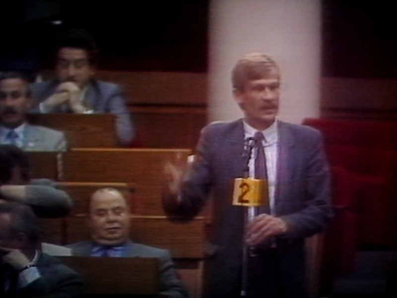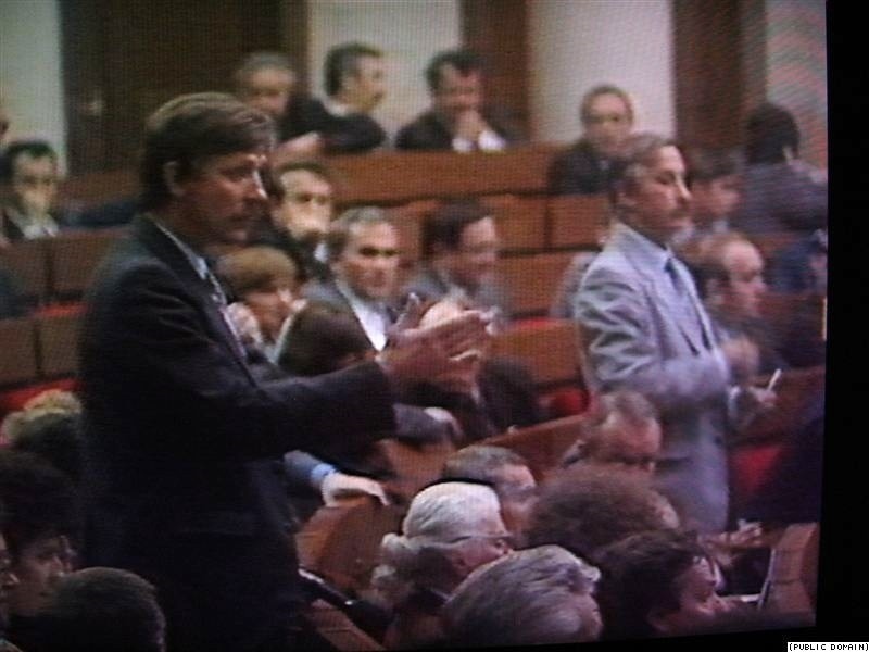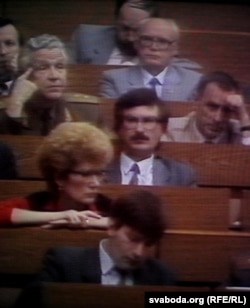 Прыступілі да фармаваньня парадку дня сэсіі. Пачалі засьведчваць сваю пазыцыю так званыя дэпутаты-“перабежчыкі”, якія раней памоўчвалі альбо пагаджаліся з камуністамі. Асабліва пафасна адзначыўся наш беларускі касманаўт-генэрал Уладзімер Кавалёнак. Прадстаўляючыся, ён назваў сваю парлямэнцкую прыналежнасьць так: “Ад апазыцыі!”. І аб’явіў, што ён выйшаў з шэрагаў КПСС. Усе ведалі, што ён у апазыцыю не ўваходзіў. Але гэты трук успрынялі аплядысмэнтамі. На зьбянтэжаных камуністаў выбар Кавалёнка падзейнічаў прыгнечана і злавесна.