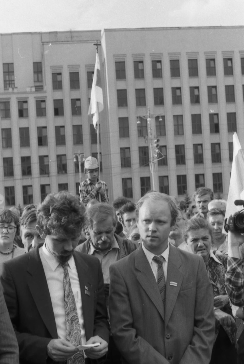 19 жніўня, у першы ж дзень маскоўскага праімпэрскага путчу, Апазыцыя БНФ вывела людзей на плошчу перад Домам ураду. Мы запатрабавалі ад кіраўніцтва ВС і Саўміну, старшыні КДБ і міністра ўнутраных спраў выкананьня Канстытуцыі і законаў, заявілі аб неабходнасьці скліканьня нечарговай сэсіі аб прыняцьці Незалежнасьці.