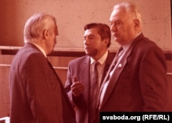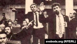Саюзьнікамі тут у нас былі дэпутаты Дэмклюбу, некаторыя “незалежнікі” і дэпутаты-“перабежчыкі”. Усяго разам з намі – каля 80-85 асобаў. Гэта менш, чым адна траціна (усіх дэпутатаў – 345, зарэгістравалася на сэсіі– 267). За астатнія галасы, волю і сьвядомасьць дэпутатаў трэба было змагацца.