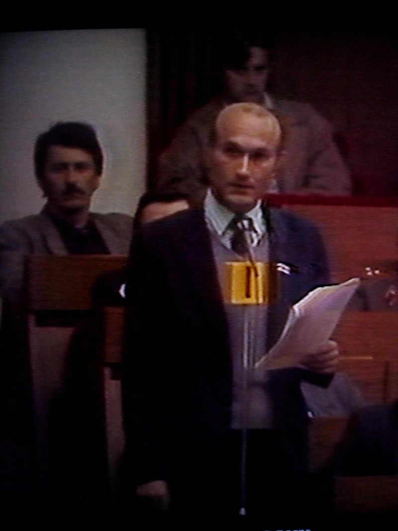 Тут дэпутат-поп, інтэлектуал і віція Віктар Радамысьльскі******** (выступаў на баку Апазыцыі БНФ) і кажа яму гэтак збоку, што “вздор говорите, уважаемый депутат Мачуленко. Никто не может ни выдворить, ни арестовать, ни даже дотронуться до народного депутата, согласно закона”.