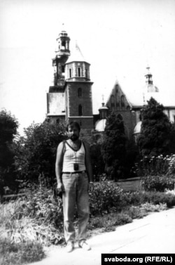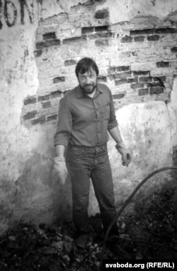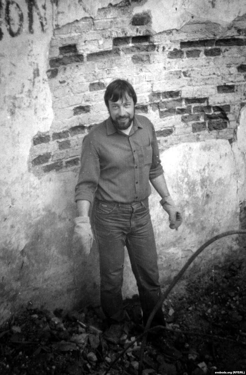 Ігар Цішкін на расчыстцы Трынітарскага касьцёла. Віцебск. 1987 г.