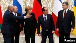 Як паведамляе ўкраінская служба Радыё Свабода, мінулы тыдзень быў багаты на міжнародныя сустрэчы і перамовы па ўрэгуляваньні сытуацыі на ўсходзе Ўкраіны. Нечаканыя візыты спачатку ў Кіеў, а затым у Маскву канцлеркі Нямеччыны Ангелы Меркель і прэзыдэнта Францыі Франсуа Алянда, тэлефонныя перамовы, Мюнхенская канфэрэнцыя па пытаньнях бясьпекі і, у рэшце рэшт, перамовы лідэраў Украіны, Расеі, Германіі і Францыі ў Менску.