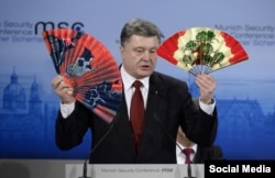 У мінулую суботу, 7 лютага, падчас выступу на Мюнхенскай канфэрэнцыі па пытаньнях бясьпекі прэзыдэнт Украіны Пятро Парашэнка прадэманстраваў пашпарты і ваенныя білеты салдатаў і афіцэраў Расеі, якія ваявалі на ўсходзе Ўкраіны.