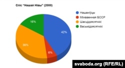 У спісе «Нашай Нівы» яшчэ моцна адчуваецца подых паўставаньня незалежнасьці. Акцэнт зроблены на 1990-я, на тое, каб захавацца, найперш – на нацыянальную канцэпцыю гістарыяграфіі. Таму 11 з 50 кніг у ім – тагачасныя гістарычныя дасьледаваньні і раманы. То бок найважнейшымі гадамі для кніг у ХХ стагодзьдзі былі названыя ўласна дзевяностыя. Ермаловіч, Сагановіч, Тарасаў, Туронак, Ткачоў, Чаропка, Арлоў, Дайнека трывала працінаюць увесь рэйтынг «Нашай Нівы», а першыя два нават замыкаюць васьмёрку найлепшых. У першай палове сьпісу 100 галоўных кніг ХХ стагодзьдзя – 8 караткевічаўскіх і 4 быкаўскія, асноўны масіў – нашаніўцы (19 кніг, амаль 40%). На пасьляваенную літаратуру, акрамя згаданых гісторыкаў, а таксама Караткевіча і Быкава, застаецца гулькін нос: эмігранты Акула і Віцьбіч, «Людзі на балоце», «Родныя дзеці», «Вастрыё стралы» Разанава і «Выбранае» Стральцова. Жанчыны займаюць функцыянальныя пазыцыі ў пачатку, сярэдзіне і напрыканцы сьпісу: дзясятай ідзе «Споведзь» Ларысы Геніюш, у 20-30-х хаваюцца дэбютныя паэтычныя кніжкі той жа Геніюш і Арсеньневай, а топ-50 замыкае «У вайны не жаночае аблічча» Алексіевіч і «Хрэст на свабоду» Цёткі. Зразумела, відавочны маскулінны змагарскі характар гэтай расфасоўкі. Найвышэй ацанілася ў Геніюш мемуарная, антысавецкая, лягерная «Споведзь», а паэзія зайшла ў 35 месца. Арсеньнева ўзьнікае, безумоўна, дзякуючы таму ж антысавецкаму эміграцыйнаму флёру біяграфіі, а рэвалюцыйная ўлётка Цёткі, што «цара павесіць трэба» намякае на скорае паўставаньне БНР. Кніга Сьвятланы Алексіевіч, якая нейкім дзівам – рускамоўная – прарываецца ў топ-50, наводзіць на думку, што і напрыканцы ХХ стагодзьдзя адчуваўся энэргетычны запал, які ўжо нельга было так проста ставіць у ігнор.