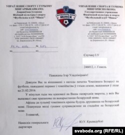 Будзем спадзявацца, што адзначанае ў лісьце спраўдзіцца, беларускай мовы ў клюбу стане болей, а не паўторыцца сытуацыя з афішамі.
