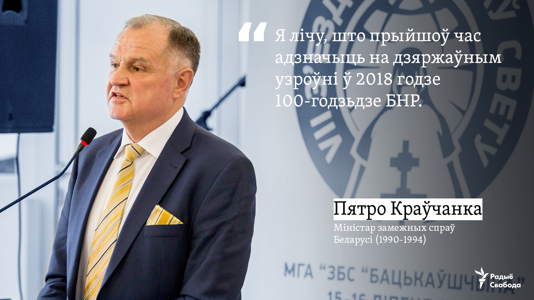 «Я лічу, што прыйшоў час адзначыць на дзяржаўным узроўні ў 2018 годзе 100-годзьдзе БНР і БССР праз год. Ніякіх перашкодаў для гэтага я ня бачу. БНР і БССР — гэта справа аднаго кораня».