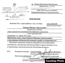 14 лістапада 2014 году 22-гадовы жыхар вёскі Лісец Калінкавіцкага раёну Міхаіл Бяўзюк пайшоў у армію. Пайшоў добраахвотна, сам хацеў служыць. Звычайны хлопец, захапляўся паляваньнем і рыбалкай, да арміі адвучыўся ў каледжы. Сярод трох братоў Міхаіл быў сярэднім. Трапіў у Печы, адслужыў паўгода. Вучэбка амаль скончылася, калі з часткі раптам пазванілі брату Юрыю.