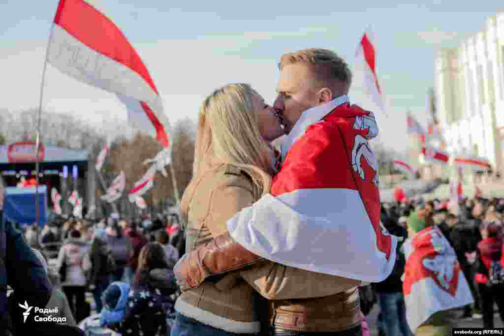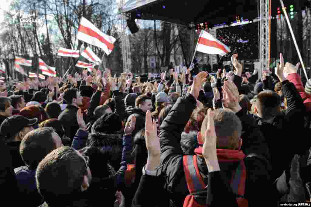 25 сакавіка беларусы адзначаюць 100-ю гадавіну абвяшчэньня незалежнасьці Беларускай Народнай Рэспублікі. Цэнтральная падзея грамадзянскай кампаніі #БНР100 — мітынг-канцэрт «Сьвята Незалежнасьці» ля менскага Опэрнага тэатру, на Траецкай гары, санкцыянаваны ўладамі. Удзельнікі гістарычнай падзеі — у аб'ектывах фотакарэспандэнтаў Свабоды.
