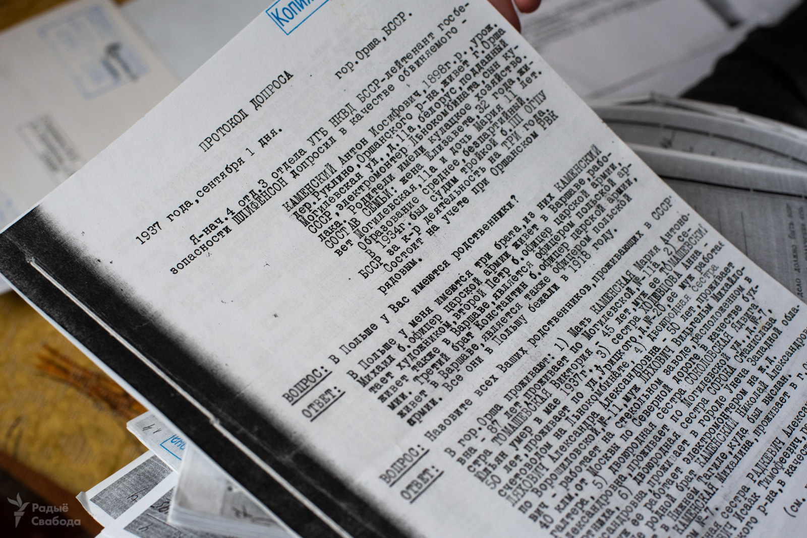 А вось з расейскіх архіваў Ігар атрымаў стосы дакумэнтаў — падрабязныя пратаколы допытаў. За ўсё гэта ён заплаціў Сьвярдлоўскаму архіву 1800 расейскіх рублёў (на 2015 год — каля 30 даляраў ЗША. — РС). Як яны там апынуліся? Антон Каменскі адбываў высылку ў Ніжнім Тагіле, а таму ранейшыя справы былі перасланыя на Ўрал.