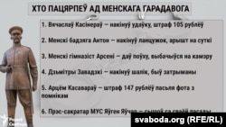Актывістаў, якія праводзілі пэрформанс каля скульптуры, штрафавалі за «непадпарадкаваньне міліцыі» — нібыта яны не выходзілі зь міліцэйскага аўтамабіля і такім чынам не падпарадкоўваліся міліцыянтам.