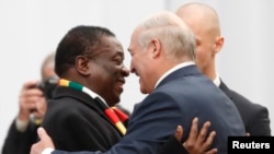- Мнангагва заявіў, што галоўная мэта Зымбабвэ ў супрацоўніцтве зь Беларусьсю — разьвіцьцё эканамічных адносінаў, піша БелТА. Лукашэнка сказаў, што Беларусь зацікаўлена ва ўмацаваньні бізнэс-сувязяў.