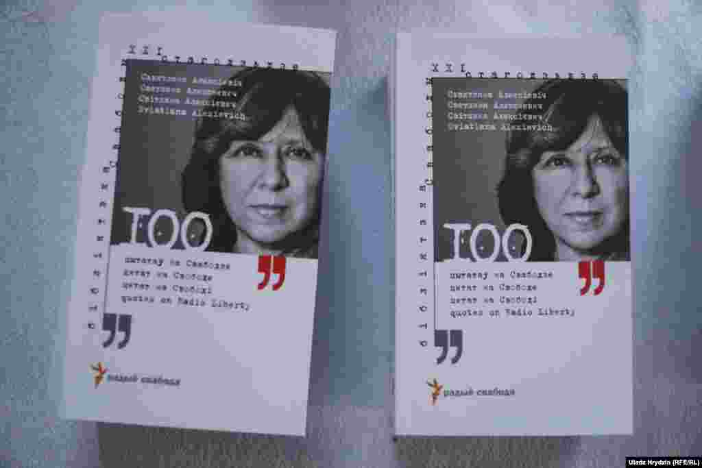 У рэстарацыі «Сёмае неба» 15 сакавіка прайшла прэзэнтацыя новай кнігі Святланы Алексіевіч «100 цытатаў на Свабодзе». У відэазвароце нобэлеўская ляўрэтка адказала на пытаньні пра свабоду, апазыцыю і каханьне.