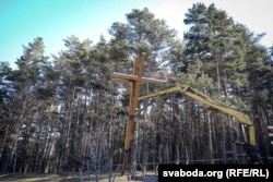 Дэмантаж крыжоў у мэмарыяльным комплексе Курапаты. 4 красавіка 2019 году.