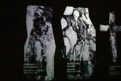 На калідорныя сьцены выводзіцца анімацыйная 3D-праекцыя з хронікай тагачасных падзеяў. Расейскія канваіры вядуць на расстрэл ці эшафот палонных, выкананьне прысуду... Сьледам чорна-белыя выявы парэшткаў: са зьвязанымі рукамі, зь пераламанымі касьцьмі і чарапамі. Тут жа ў нішах асабістыя рэчы, знойдзеныя падчас раскопаў.