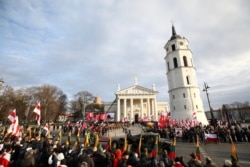 Тым часам да сярэдзіны дня на Катэдральнай плошчы заўважна паболела літоўскіх, польскіх, украінскіх палотнішчаў. Прадстаўнікі гэтых краін воплескамі рэагавалі на выступы сваіх лідэраў, трансьляваныя на экраны — тыя адзначалі неацэнны ўнёсак удзельнікаў вызвольнага руху, які праз паўтара стагодзьдзя прывёў да дэмакратычных працэсаў ва Ўсходняй Эўропе.