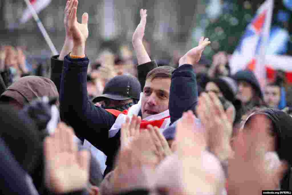 Пасьля паўдня людзі пачалі зьбірацца на Кастрычніцкай плошчы. На ацэнку карэспандэнта Свабоды, там былі ад некалькіх соцень да адной тысячы чадавек.