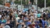 Пасьля таго як дождж скончыўся, людзі зноў вярнуліся ў чаргу. Уздоўж удзельнікаў пачалі хадзіць міліцыянты з рупарамі ў атачэньні сілавікоў у цывільным, яны патрабавалі ад людзей разысьціся.