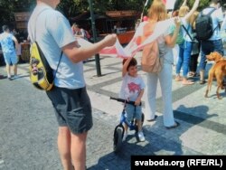Утварыўшы кола, якое атачыла цэлую плошчу, людзі гаварылі ў вольны мікрафон, сьпявалі, выказвалі свае патрабаваньні: «Спыніць дыктатуру ў Беларусі», «Выбары, а не вайна з уласным народам», «Мы хочам жыць у Беларусі як за мяжой». Многія мелі пры сабе таксама тапкі і плякаты «Стоп таракан!»