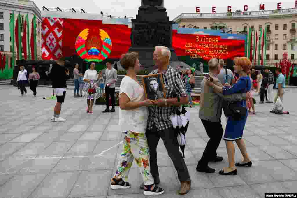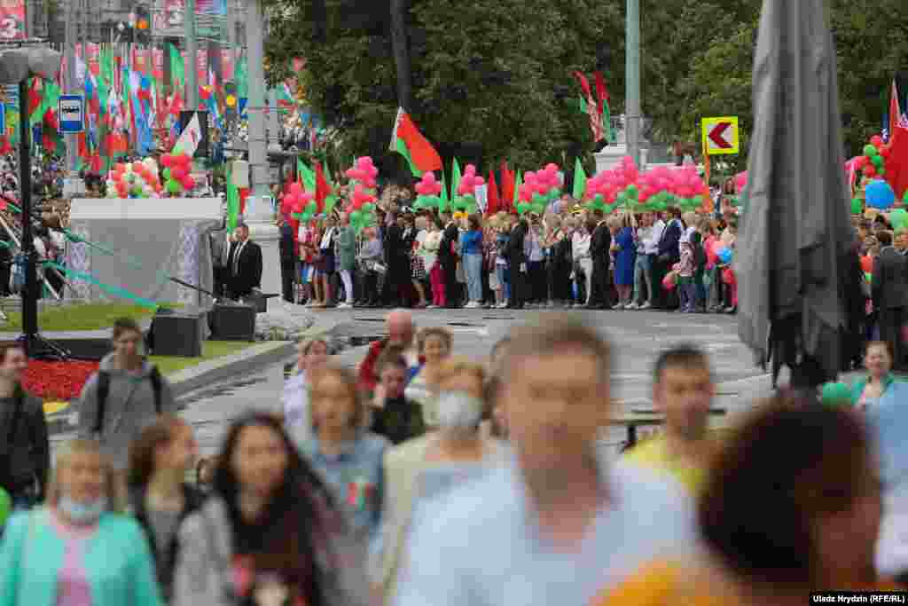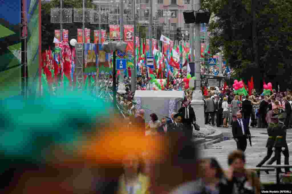 Фотакарэспандэнт Свабоды паназіраў за афіцыйным сьвяткаваньнем Дня незалежнасьці на плошчы Перамогі ў Менску.
