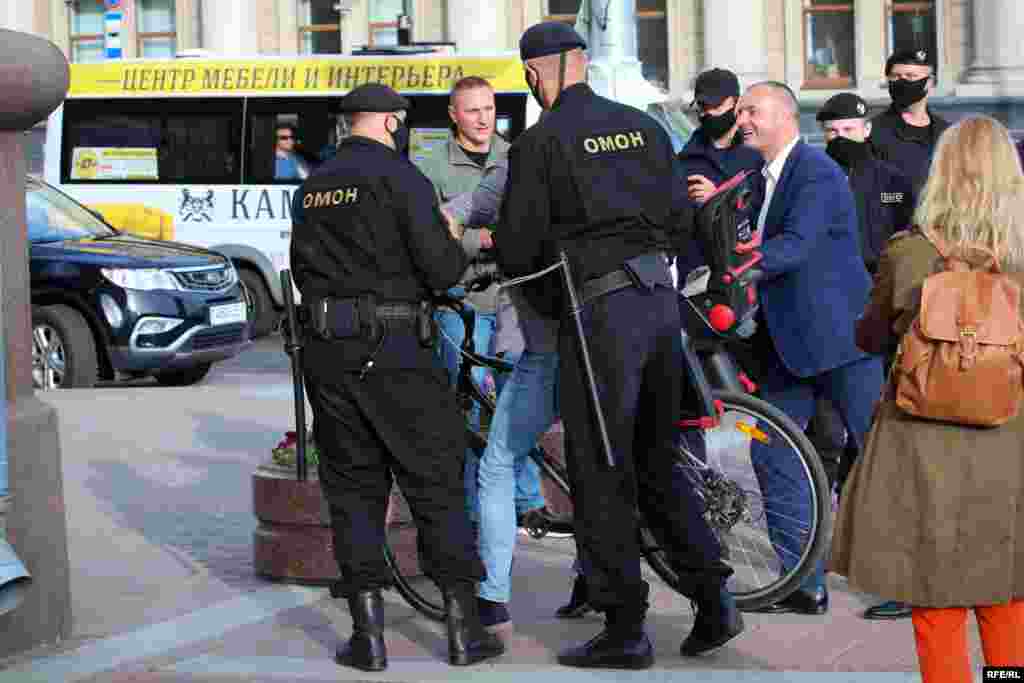 Каля гасьцініцы «Мінск» затрымалі чалавека на ровары зь дзіцячым сядзеньнем