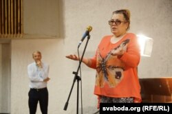 «Ваша прамова — абы што. Вы ганьбіце нашы прадпрыемствы, у тым ліку „Камінтэрн“, а самі ня ведаеце, якія там аб’ёмы... Чаму вы дазваляеце сабе выходзіць на аўдыторыю?», — закрычала незнаёмая жанчына з залі на выступоўцу.