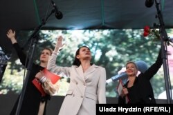 Кандыдатка ў прэзыдэнты Беларусі Сьвятлана Ціханоўская 30 ліпеня выступіла на мітынгу-канцэрце ў сваю падтрымку ў менскім парку Дружбы народаў.