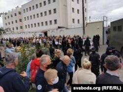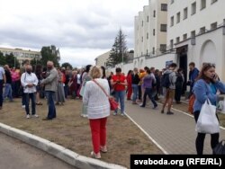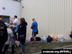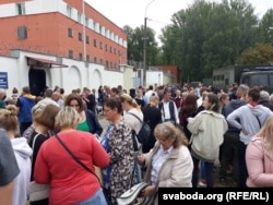 Каля турмы на Акрэсьціна ў Менску днём 12 жніўня ўтварыліся вялікія чэргі сваякоў затрыманых падчас пратэстаў пасьля выбараў 9 жніўня. Людзі ня ведаюць, дзе іх затрыманыя блізкія, сьпісаў няма.