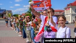 У Горадні каля аўтавакзалу дзяўчаты выйшлі ў белым і з кветкамі. ФОТА