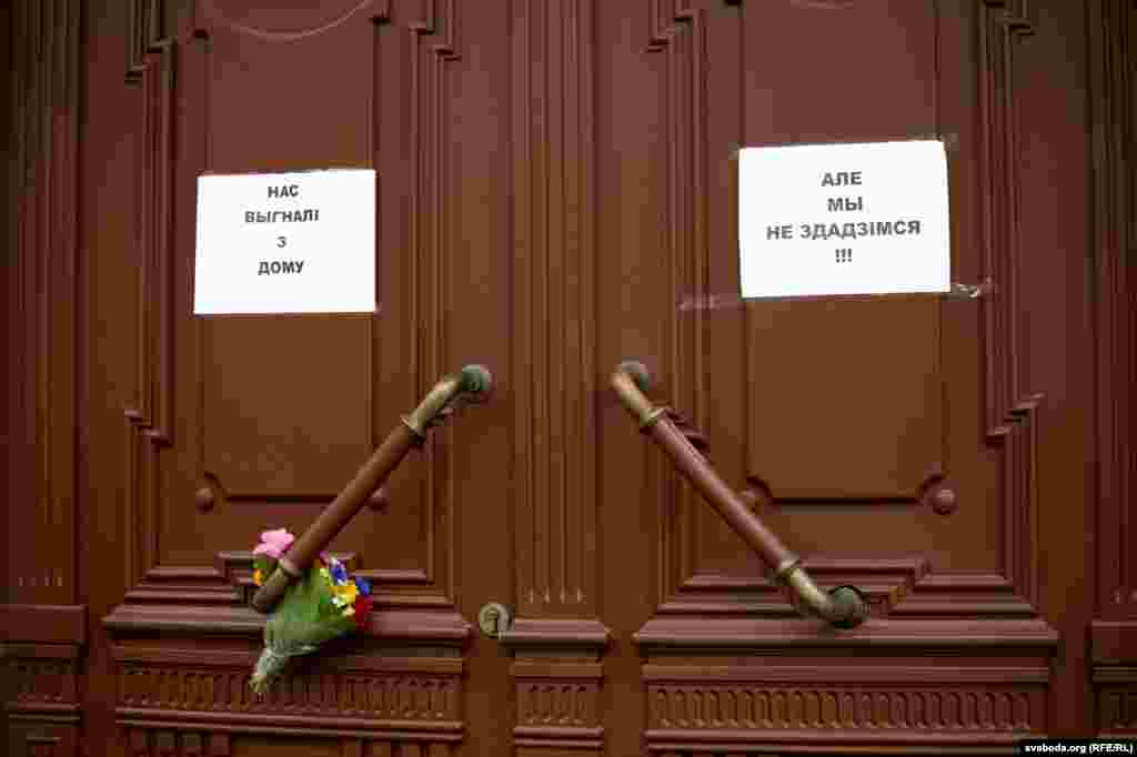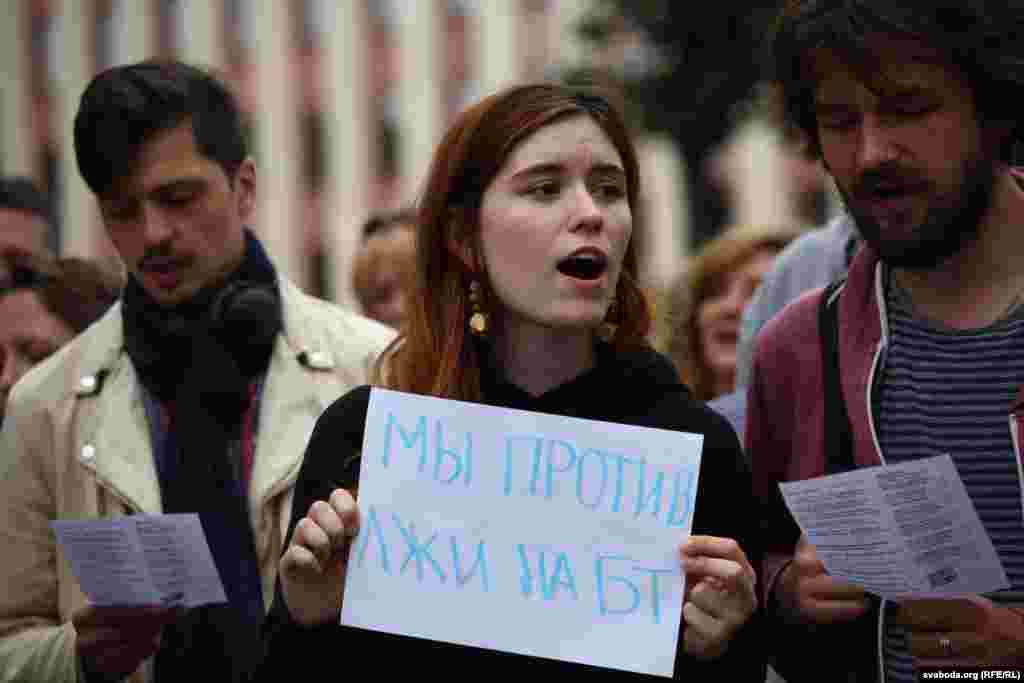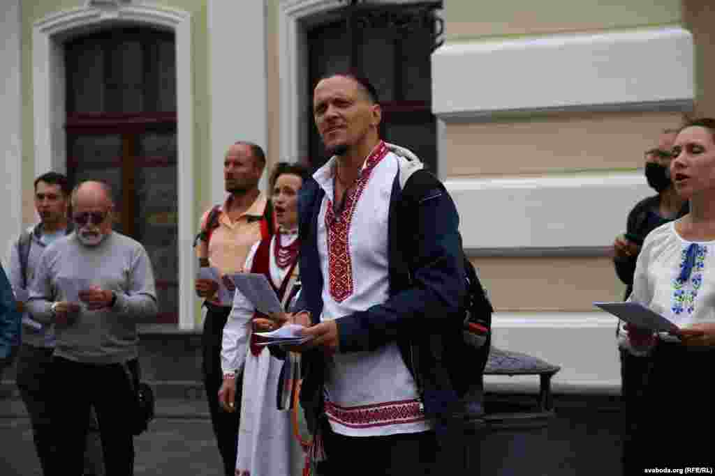 Каля Купалаўскага тэатру сьпявалі на знак салідарнасьці. Фотарэпартаж