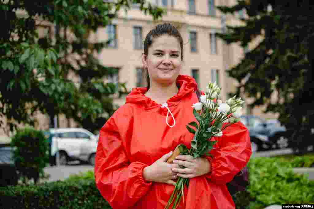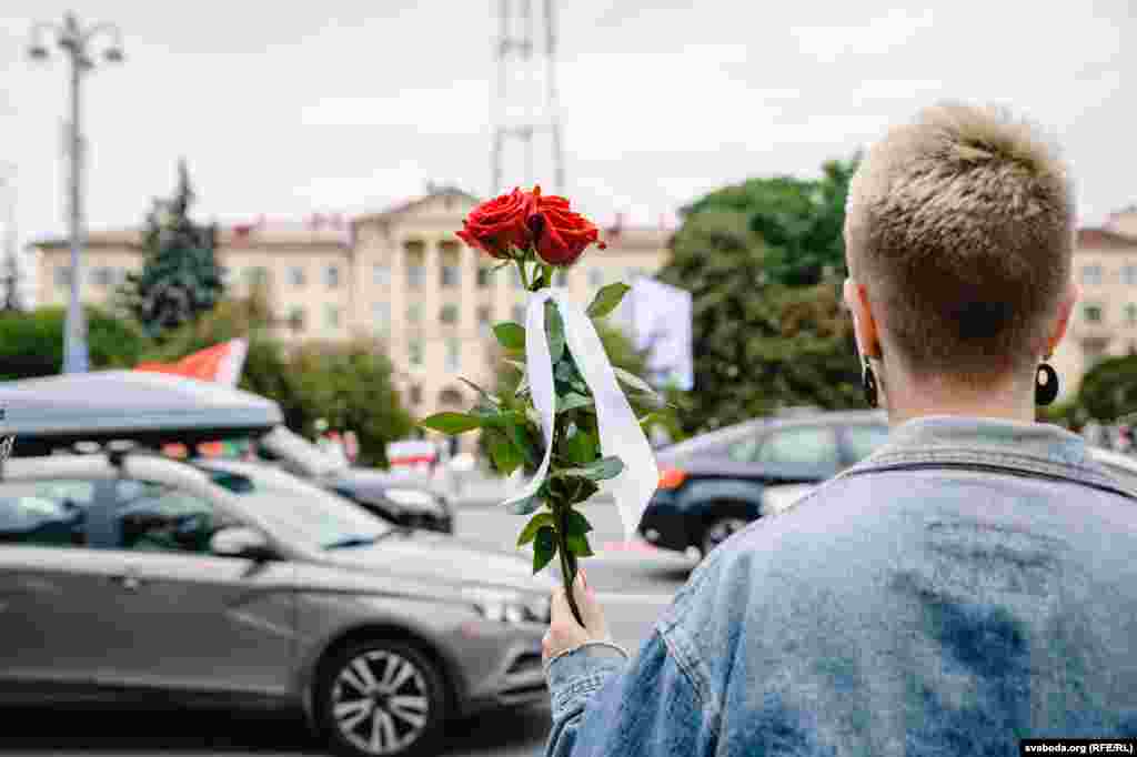 Людзі сталі ў «ланцуг салідарнасьці» на плошчы Перамогі ў Менску. Фотарэпартаж