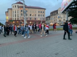 Людзі, якія стаялі ў «ланцугу пакаяньня» ў раёне Нямігі, рушылі ў бок СІЗА №1 на вуліцы Валадарскага.