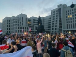 Тым часам ля Дому ўраду на плошчы Незалежнасьці ў Менску некалькі тысяч чалавек зноў сабраліся на мітынг. Пратэстоўцы працягваюць падыходзіць. На плошчы зноў запалілі ліхтарыкі.