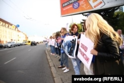 50 чалавек з плякатамі сталі на скрыжаваньні вуліц Гарадзкі Вал і Нямігі.