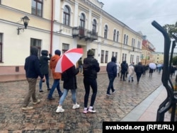 - На вуліцы знаходзілася шмат «ціхароў», міліцэйскае кіраўніцтва. АМАП у шаломах перакрыў уваходы на вуліцу. Аднак нікога не чапалі. Калі пайшоў дождж, людзі разышліся па крамах і кавярнях. Не было відаць, каб некага затрымлівалі.