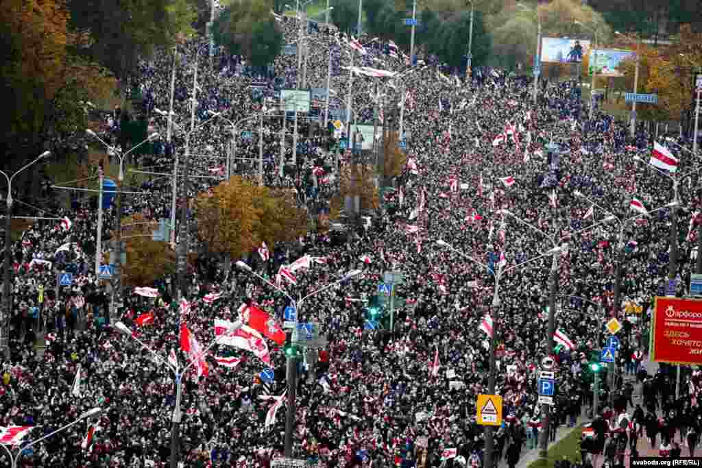 Шматтысячныя вулічныя пратэсты адбываюцца ў Менску адзінаццатую нядзелю запар пасьля прэзыдэнцкіх выбараў.