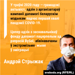 Андрэй Стрыжак на пачатку вясны 2020 году стаў адным з ініцыятараў кампаніі па арганізацыі дапамогі беларускім мэдыкам падчас эпідэміі каранавірусу. Ініцыятыва #BY_help_med займалася зборам грошай на закуп індывідуальных сродкаў засьцярогі для мэдыкаў, а таксама дастаўкай закупленага ў рэгіёны.