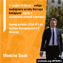 Неўзабаве пасьля заявы Віктара Бабарыкі аб жаданьні ўдзельнічаць у выбарах прэзыдэнта Беларусі Максім Знак стаў юрыстам ягонага выбарчага штабу. Як і Марыя Калесьнікава, Знак удзельнічаў у асноўных падзеях асабіста. Суправаджаў Бабарыку падчас візытаў у ЦВК, а пасьля арышту патэнцыйнага кандыдата ў прэзыдэнты разам з Марыяй Калесьнікавай стаў адной з кіраўнічых фігур у выбарчым штабе Бабарыкі.