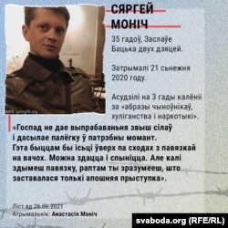 - Затрымалі 21 сьнежня 2020 году. Асудзілі на 3 гады калёніі за «абразы чыноўнікаў, хуліганства і наркотыкі».