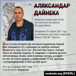 - Затрымалі 3 лістапада 2020 году за «датычнасьць да ўзлому сыстэмы Менгарвыканкаму» і «ўдзел у пратэстах».