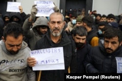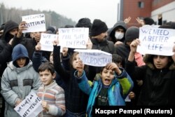Мігранты, якія знаходзяцца ў гандлёва-лягістычным цэнтры ля беларуска-польскай мяжы, 25 лістапада зладзілі мітынг.