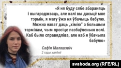 Сафія Малашэвіч: «Калі вы дасьцё мне тэрмін, я магу ўжо ня ўбачыць бабулю»