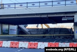 Прэс-служба сталічнай ДАІ паведаміла, што ў сувязі з абвальваньнем моста закрыты рух усіх відаў транспарту: