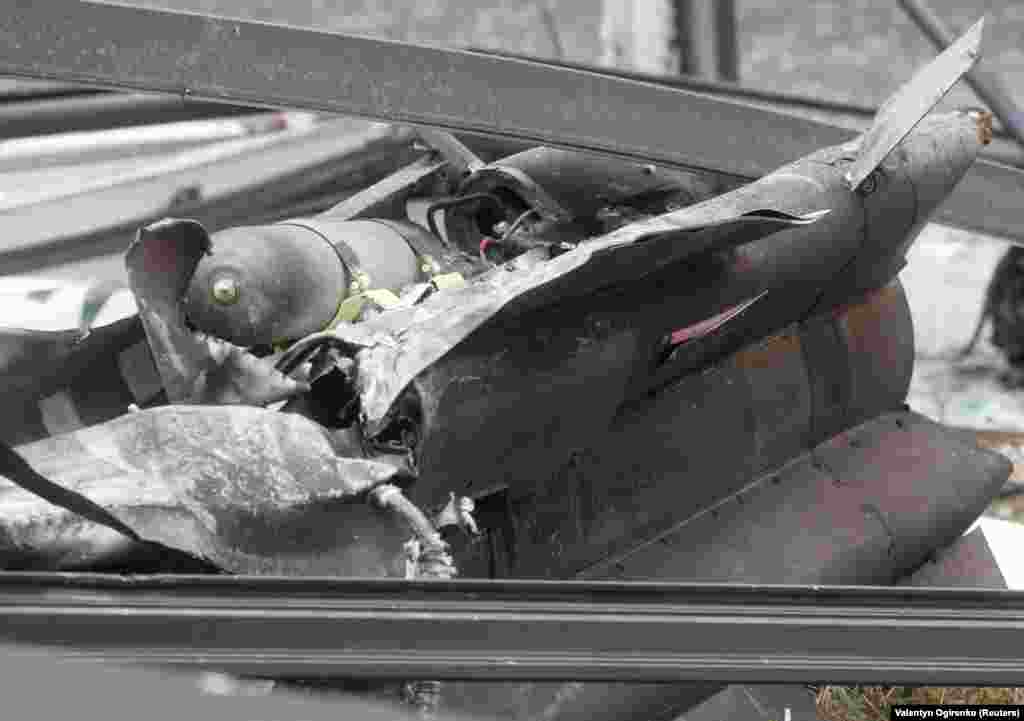 Сілавікі аглядаюць ракету ў цэнтры Кіева