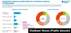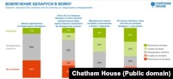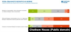 Грамадзкай думцы ўласьцівыя супярэчнасьці. Баяцца ўцягваньня ў вайну 57%; лічаць, што Беларусь уцягнуць у вайну, — 11%. Беларусам у адказах апытаньняў уласьцівая гатоўнасьць зваліць адказнасьць на Расею, маўляў, мы не вінаватыя, гэта ўсё яны. І такія падыходы ёсьць на розных баках палітычнага спэктру. Прыхільнікі Лукашэнкі кажуць: ваюе Расея, мы тут ні пры чым, стаім убаку, курым. У прыхільнікаў пратэсту ёсьць адчуваньне, што ў гэты вір нас цягне Расея».