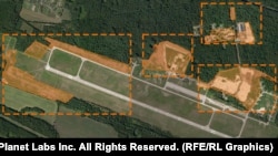 Працягнулася высечка лесу і расчыстка тэрыторый, будоўля аб’ектаў. Заўважна, што вайсковай тэхнікі на аэрадроме цяпер няшмат. Мы знайшлі на тэрыторыі толькі некалькі комплексаў С-300 ці С-400. Самалётаў на пляцоўках няма, стаяць толькі два верталёты.