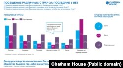 — Найбольш — у Расею. На другім месцы — Украіна. Далей — Польшча, Літва. Нягледзячы на тое, што раней беларусы шмат атрымлівалі візаў краінаў ЭЗ, яны ўсё роўна часьцей езьдзілі ў Расею і ва Ўкраіну — у краіны, куды можна лёгка ўехаць, дзе ня трэба візаў.