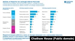— У ранейшых апытаньнях вы пыталіся пра палітычны выбар паміж саюзам з РФ і ўступленьнем у ЭЗ. У жнівеньскім апытаньні вы цікавіліся пра той жа выбар, але асабісты: дзе б вы хацелі жыць і працаваць — на Захадзе ці ў Расеі? І тут расклад адваротны кірункам замежных паездак і наяўнасьці сваякоў: жыцьцю і працы на Захадзе аддалі перавагу 38%, у Расеі — 33%. Чым абумоўлены гэты выбар?